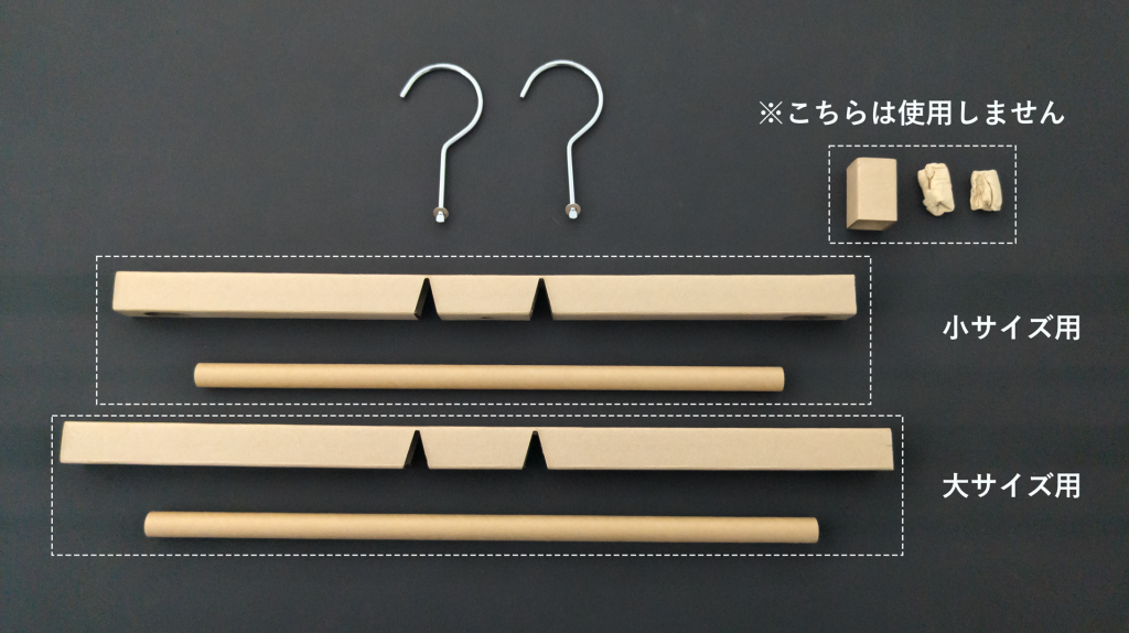本体(角紙管・丸紙管)及び金属製のフックがセットになっております。